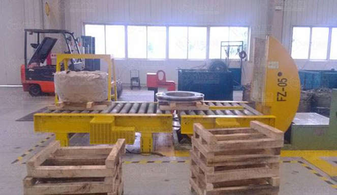 輸送式翻轉(zhuǎn)機(jī)搭配纏繞包裝機(jī)